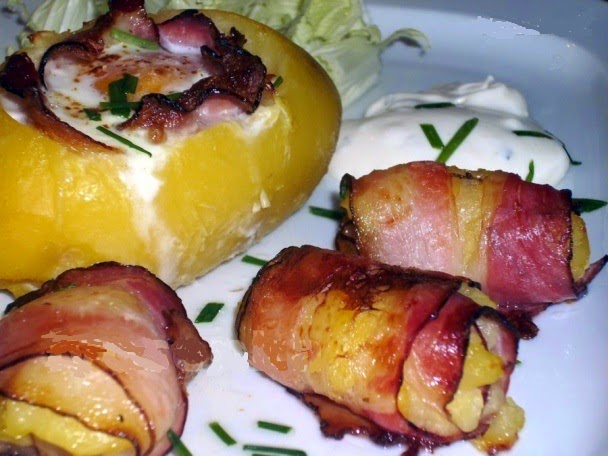 Ψητές πατάτες με μπέικον αυγό και μπουκιές μπέικον