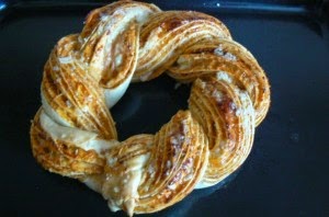 Κόβουμε κατά μήκος μέχρι την μέση και τα δύο ρολά και τα πλέκουμε σε πλεξούδα.
